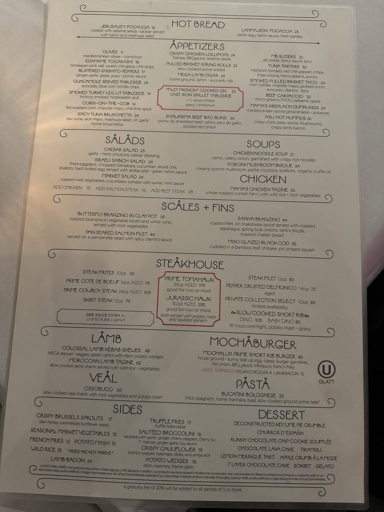 Introducing the menu at Mocha Red Steakhouse + Mixology Bar is a delightful journey for discerning palates. Nestled in the heart of Manhattan, this kosher steakhouse marries classic steakhouse fare with innovative mixology. Start with enticing dinner salads like the SABICH SALAD, which harmoniously combines fried eggplant with Amba aioli for a burst of flavor. For pasta lovers, the BUCATINI BOLOGNESE presents thick spaghetti paired with a rich, slow-cooked sauce that showcases prime beef, igniting taste buds with each bite.